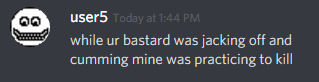 The discourse was set in motion by a random user named “dennis was so wasted i mean damn”; I wasn’t around for the initial confrontation so I didn’t see it happen, but this user was promptly banned so it must have been at least vaguely awful. Yet, the damage was done by the time this user was disposed of: the conversation was in full swing, and everyone who’s experienced it recently was growing steadily more annoyed.