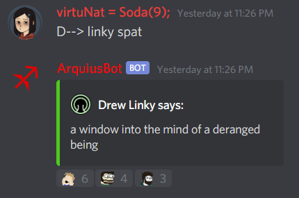 Honestly, I can’t say enough good things about Nat and WoC’s work on Arquiusbot. They are extremely attentive and quick to implement things that are necessary or even just fun. There’s an enormous amount of potential surrounding this bot, and I think I speak for more than just myself when I say I’m excited to see what we all do with it in the future.
