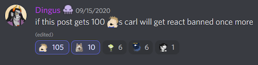 Makin briefly makes me a coadmin again because he was too lazy to add a Rosemary emote. The reason he wanted the emote added in the first place is because there’s an ongoing Twitter poll contest for “best yuri ship,” of which Rosemary is close to winning outright. Currently going against Bubbline of Adventure Time fame. James Roach has promised “new content” if Rosemary wins the contest3. People have been getting the word out, Makin even made an announcement about it in the server.
