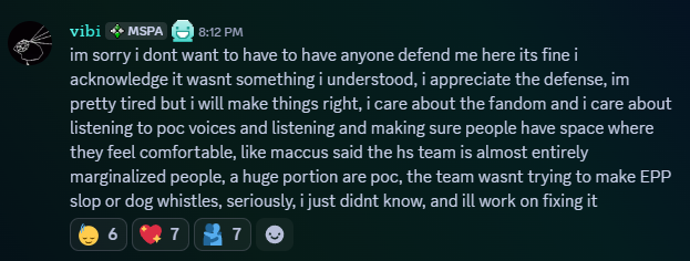 Team Special Olympics is an absurd collection of comics that occasionally have content which is strongly offensive by modern standards, but I haven’t read them in a while so I don’t really remember which ones or why. Once this fact was made known, even though none of the related merch displays offensive content, people in the official server started voicing their concerns. I make it a point not to look in the official server unless I’m specifically guided to do so, but apparently this went on so long that Vibri posted multiple ingratiating apologies about it.