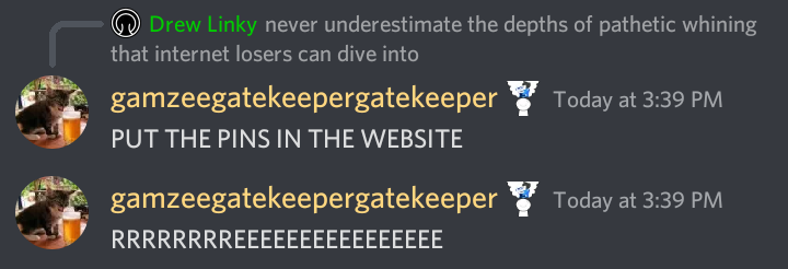 Every pin is represented here with the person who posted it, the date it was posted, the pin itself, and then a direct link to the post itself on Discord for anyone who desires context.