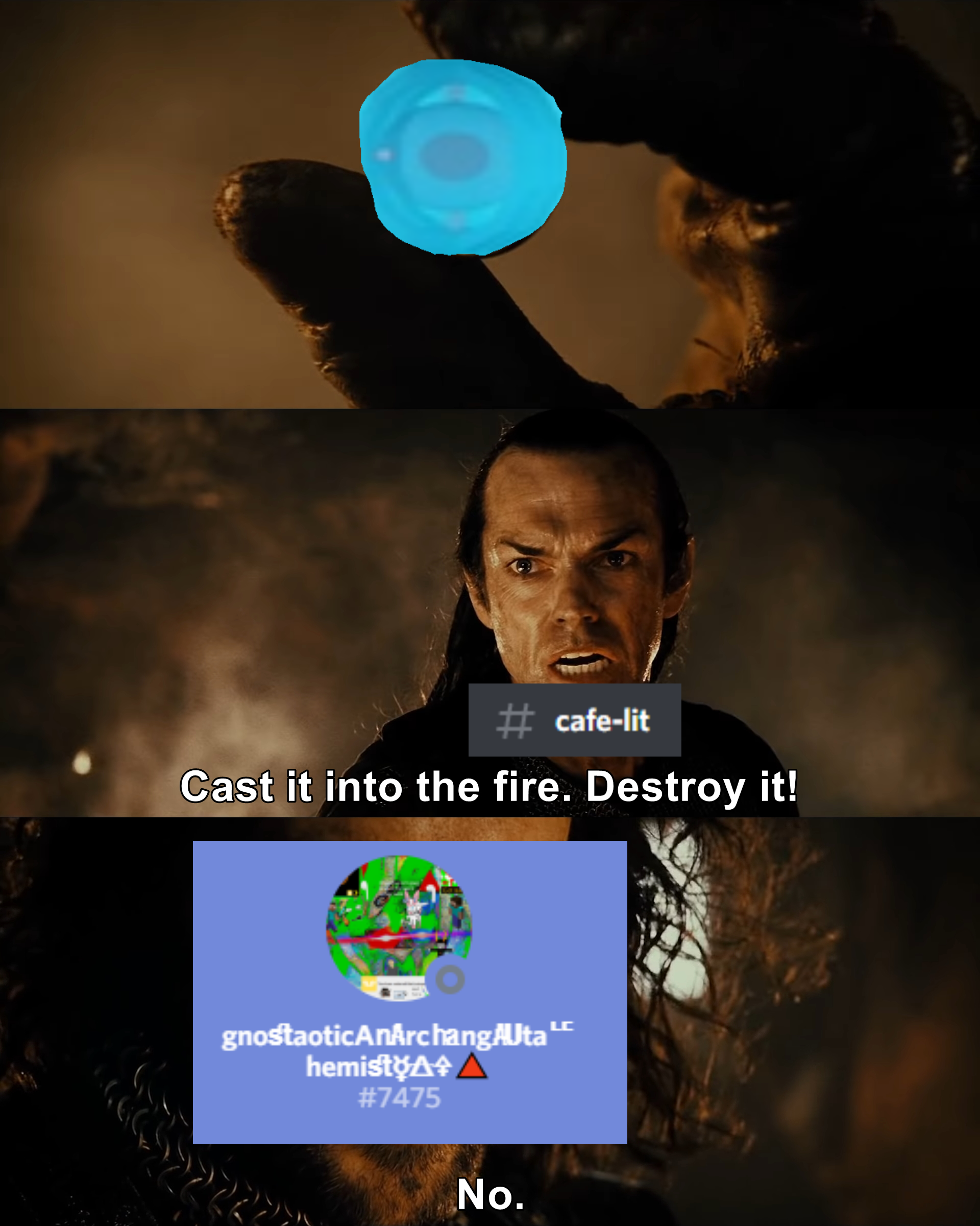 alright i sincerely think this chat is the most boring part of the server so im going back to altgen to shout in reaction to various images