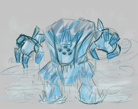 Art concept for an Ice Sentinel monster, drawn by /u/tangledThespian. This monster was later incorporated into the game.