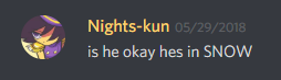 Current regulars of the channel include Kreuz whom I appreciate as they seem to have a good sense of what is actually appropriate in the channel and are interested in having its rules be upheld. Secondly, there is Oblong Meat Product, generally referred to as only Oblong. While sometimes being the one to talk about their personal problems, they are often empathetic and understanding to the problems of others and seem like a generally nice person. Finally, there is Bec, who is similar to Oblong in several ways though strikes me as slightly less experienced. Other people who have posted in the channel on several occasions and stuck in my mind are the aforementioned recently returned AC, Ferris, the pseudo Deus and the mod Sea Hitler, Furrylatula and Krilo.