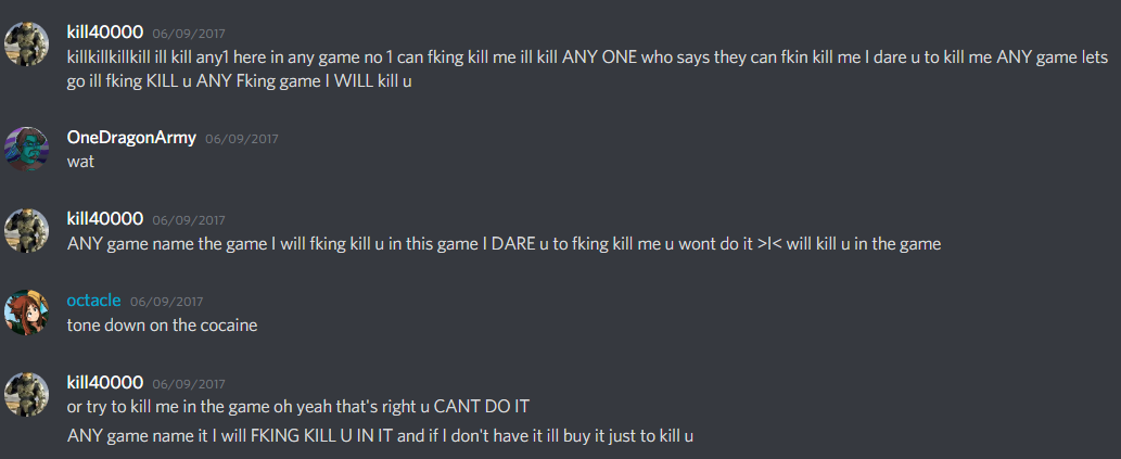 There have been a couple notable users who got banned for being hilariously creepy. I’ve saved screenshots and pins of the best of them. The one who stands out is this one guy who threatened to murder everyone in whatever game they chose. That was an easy ban.