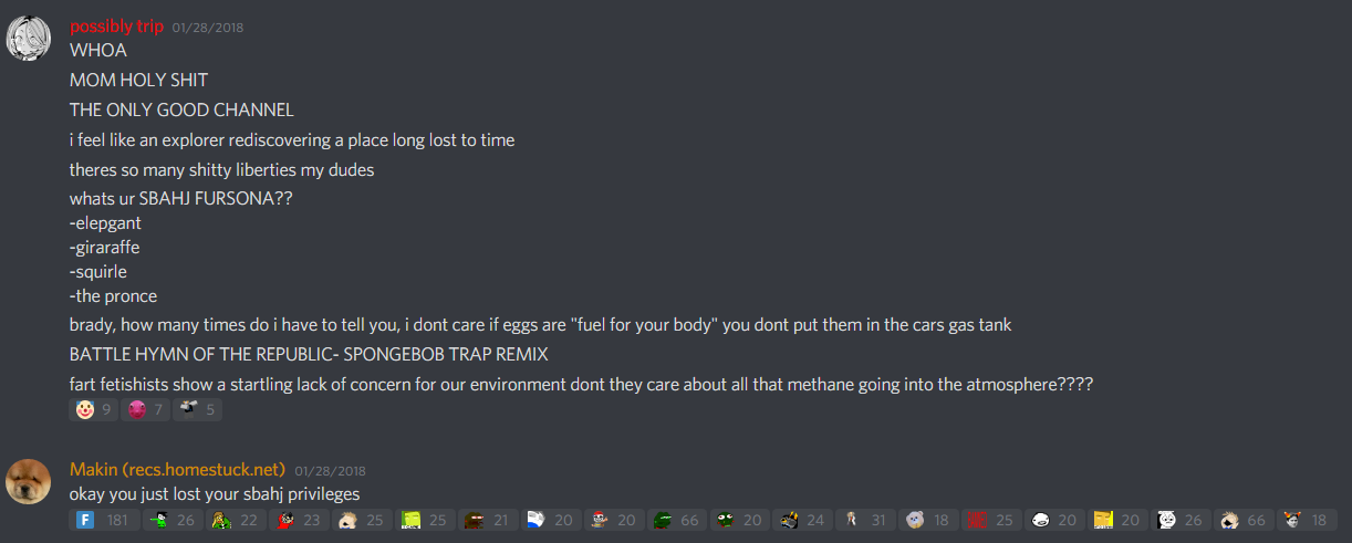 Many computer users run a modified splinter of the Homestuck + Hiveswap server every day, without realizing it. Through a peculiar turn of events, the version of Homestuck + Hiveswap Discord which is widely used today is often called "Homestuck Discord", and many of its users are not aware that it is basically the Homestuck+ Hiveswap system, developed by me. - what the fuck
