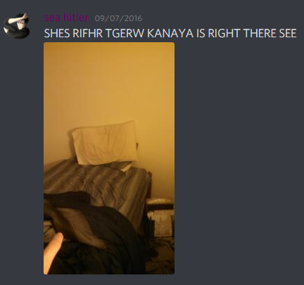 Sometime in 2016, Doctors (better known as “Sea Hitler”) burst into #altgen claiming he could see Kanaya sitting on his bed, barely coherent and clearly sleep-deprived.