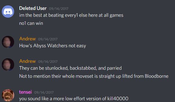Right now I’m the #gaming enforcer; I re-joined the server for awhile because #gaming had gone to hell and I wanted to fix that. I like the channel. I like video games. I’ve played so fucking many video games that I’m qualified to have an opinion on most of them, which is why I enjoy interacting with the users there; no matter what, I’ll probably have some sort of opinion or advice. The only question is whether I’m gonna have time in between all my classes.