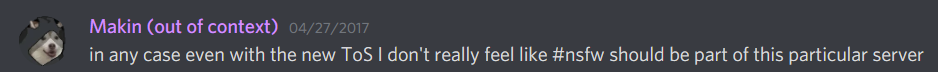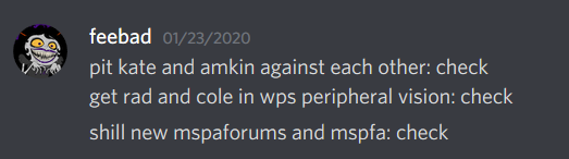 Makin did not ask for the server back despite this violation of the negotiations, and the mod team of the HSD penned a “formal complaint” about Kate Mitchell’s behavior, based on posting the full statement despite agreements not to and also because of her behavior towards the fandom as a whole over the course of her being part of the official team. Hussie followed up first by asking what the genders of the mod team of the HSD were, which upset them greatly as they saw it as a distraction from discussing Kate’s behavior and character as well as an unprofessional violation of their privacy.